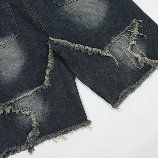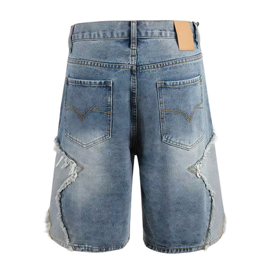 Star Frayed Patch Bermuda Denim Shorts