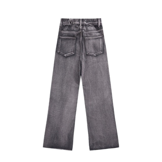 Black & Gray Straight Frayed Jeans