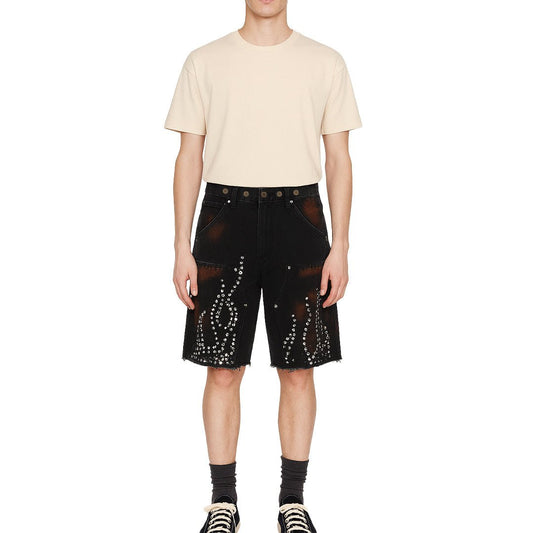 Flame Studded Denim Shorts