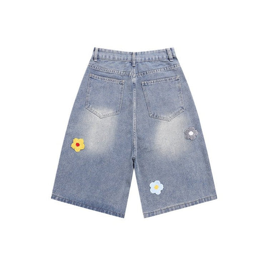 Petal Embroidered Denim Shorts