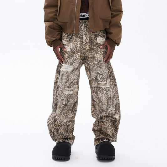 Heavy - Duty Washed Distressed Wide - Leg Jeans