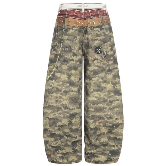 Camouflage Patchwork Streetwear Wide-Leg Jeans