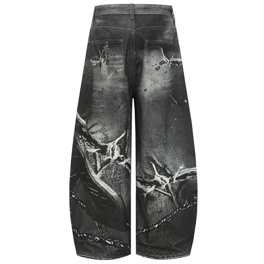3D Printed Gothic Chain Art Wide-Leg Jeans