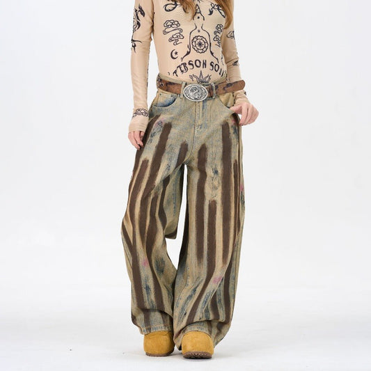 Artisan Painted Brushstroke Wash Wide-Leg Jeans