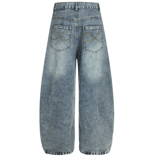 Vintage Wash Side-Zip Wide-Leg Jeans