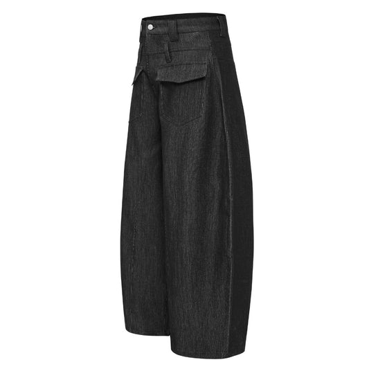 Black Washed Pocket Wide-Leg Jeans
