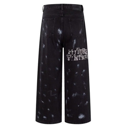 Black Splash Graffiti Wide-Leg Jeans