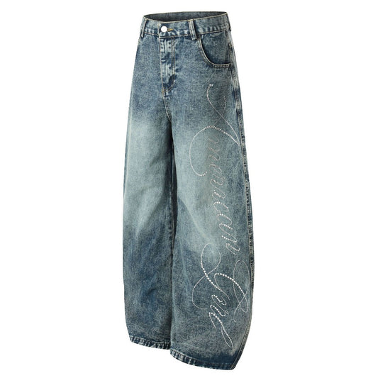 Rhinestone Script Baggy Jeans