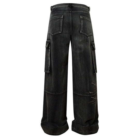 Industrial Edge Barbed Wire Cargo Wide-Leg Jeans