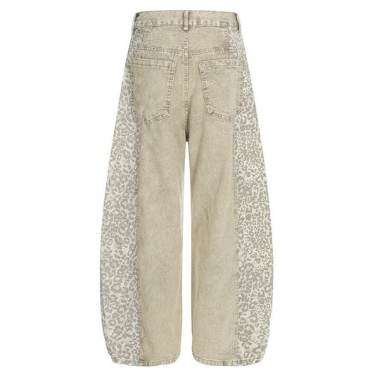 Washed Leopard Print Contrast Panel Jeans
