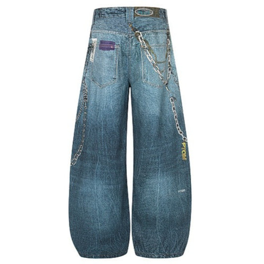 Retro Distressed Gray Oversized Balloon Jeans