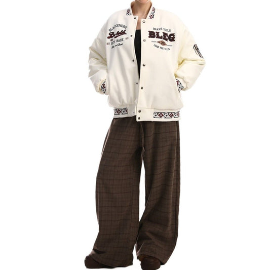 Letter Print Plaid Long-sleeve Shirt Jacket