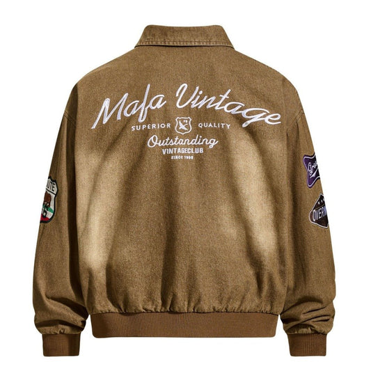 Retro Distressed Graffiti High-neck Cotton Jacket