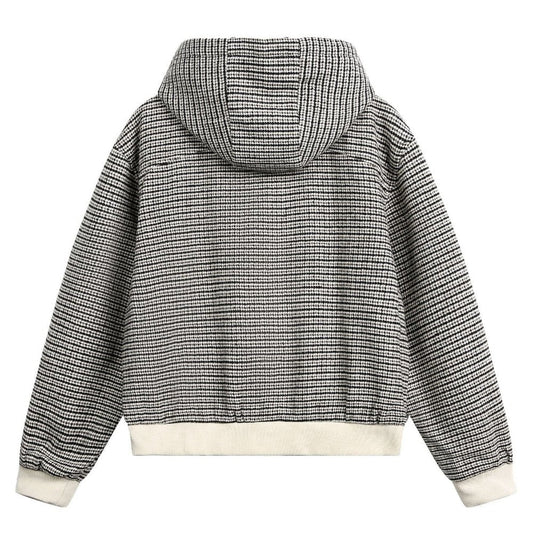 Houndstooth Toggle-Hood Tweed Jacket