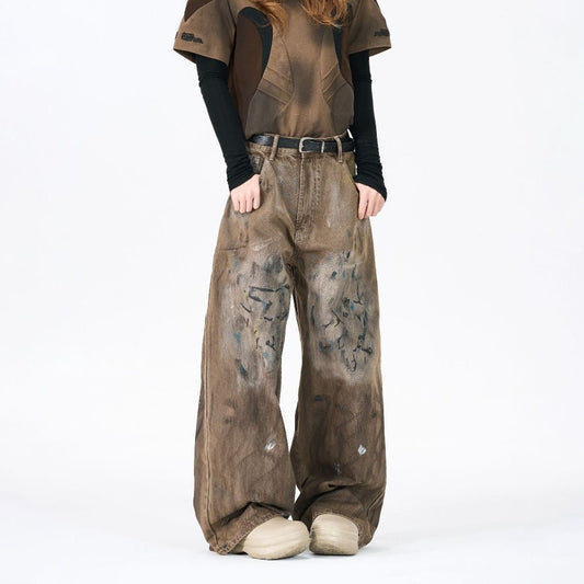 Artisan Painted Brushstroke Wash Wide-Leg Jeans