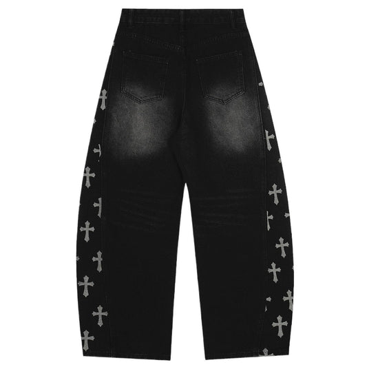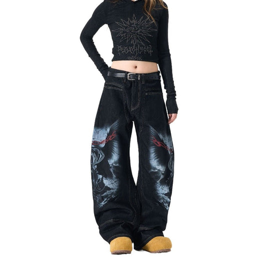3D Printed Gothic Chain Art Wide-Leg Jeans