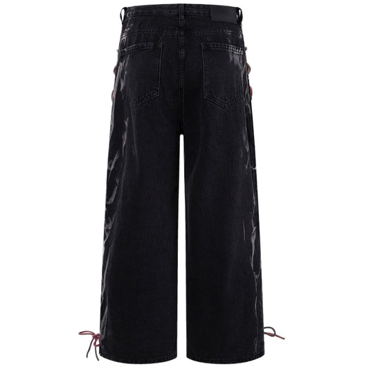 Rainbow Lace-Up Wide-Leg Black Jeans