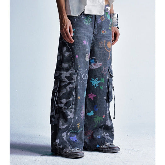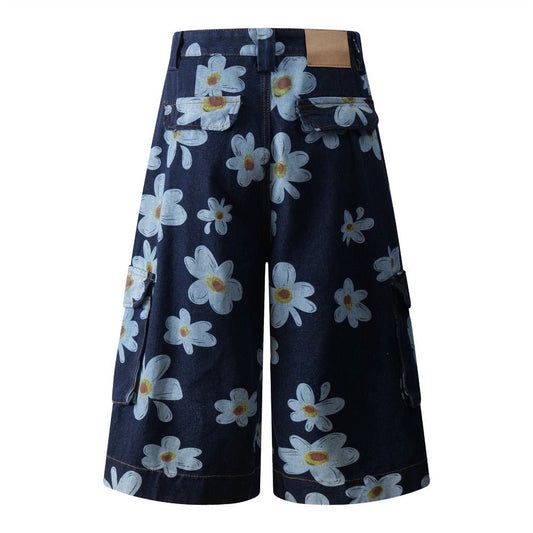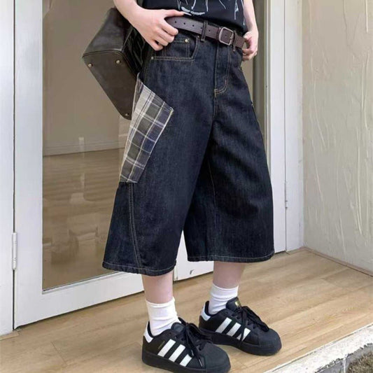 Gem-Pearl Chain & Poker Denim Capri Pants