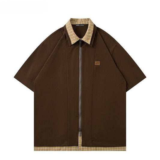 Fake Two Piece Zipper Short Sleeve Shirt
