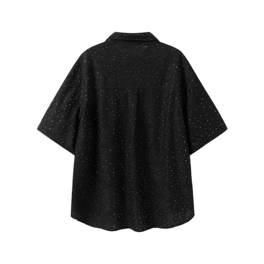 Textured Rhinestone Short Sleeve Shirt