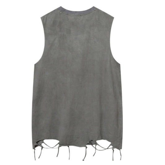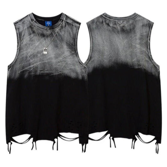 Fringed Hem Gradient Ripped Tank Tops