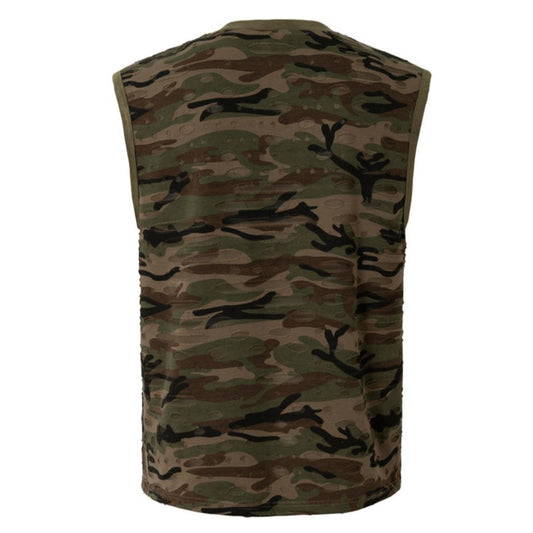Distressed Camo Textured Sleeveless Vest