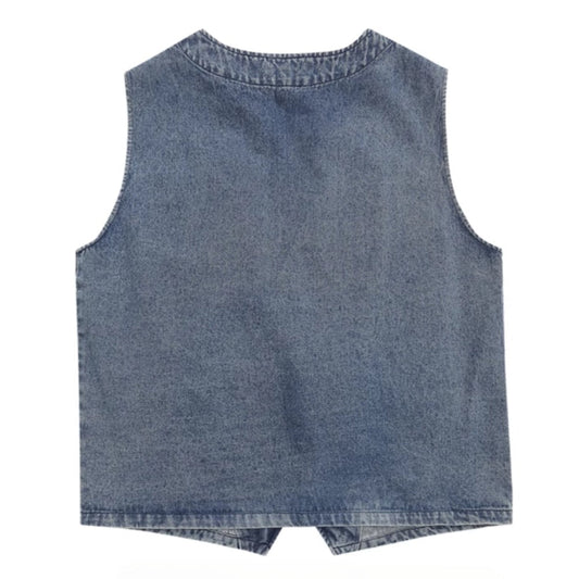 Multi-Pocket Denim Hooded Vest