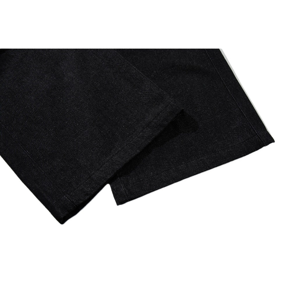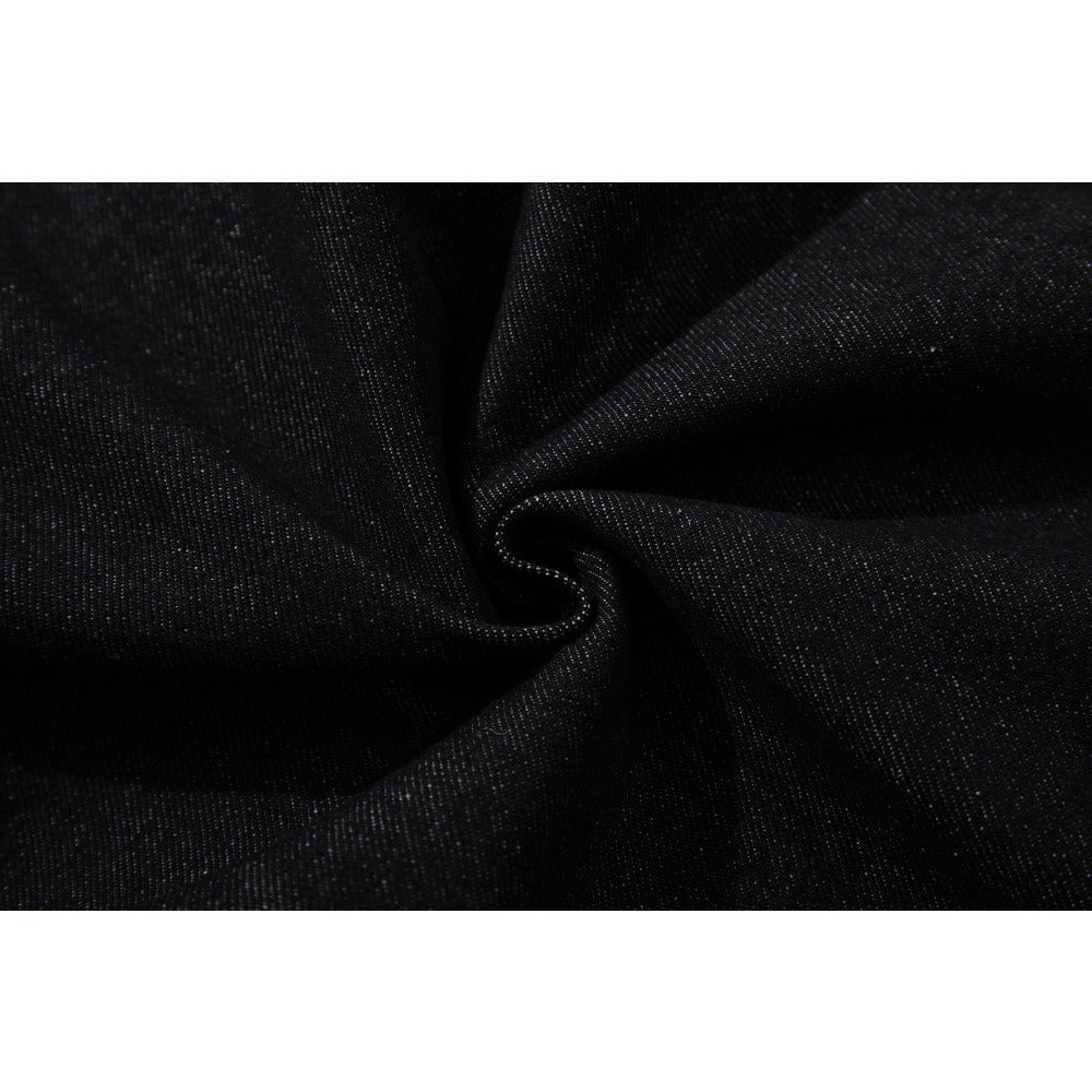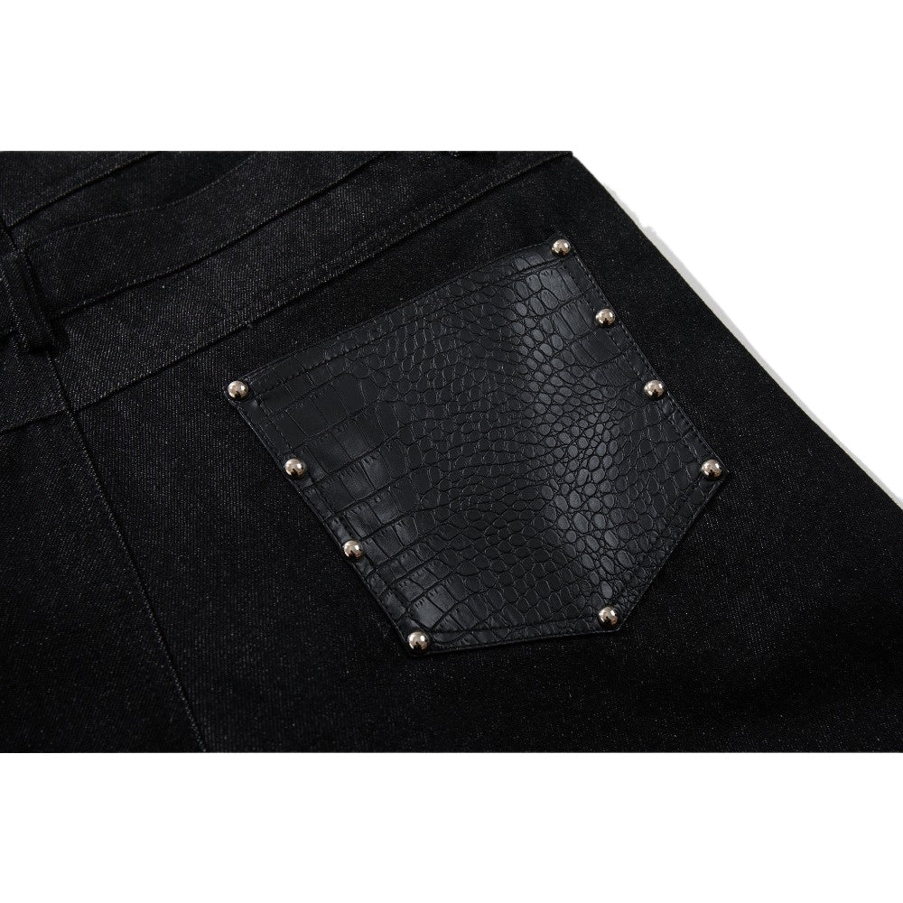 High Waist Multi-Button Baggy Jeans Crafted from 100% cotton raw black denim, these baggy jeans deliver authentic vintage appeal with contemporary edge. The elevated high-rise silhouette features a multi-layered waistband for superior comfort and support, while the loose fit provides unrestricted movement and effortless styling versatility. Distinctive croc-embossed leather patch pockets and rivet detailing on the back pockets add refined craftsmanship and visual interest. A statement piece that balances classic denim construction with modern relaxed proportions.