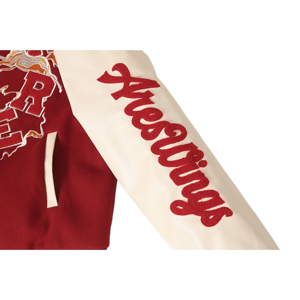 This varsity jacket combines classic Americana styling with contemporary comfort. Crafted from a durable cotton-polyester blend, the jacket features detailed chenille horse embroidery that captures vintage athletic aesthetics. The relaxed fit provides ease of movement, while ribbed collar, cuffs, and hem ensure a refined silhouette. Button closure allows for effortless layering. Perfect for those seeking timeless outerwear with authentic varsity heritage appeal.